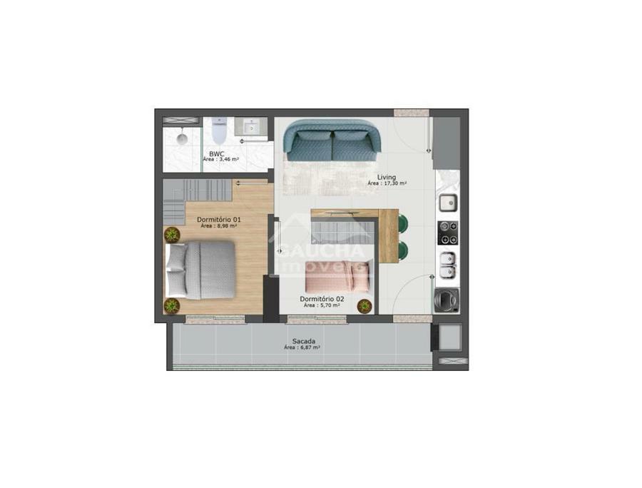 -Apartamentos de 01 dormitório com 49m²