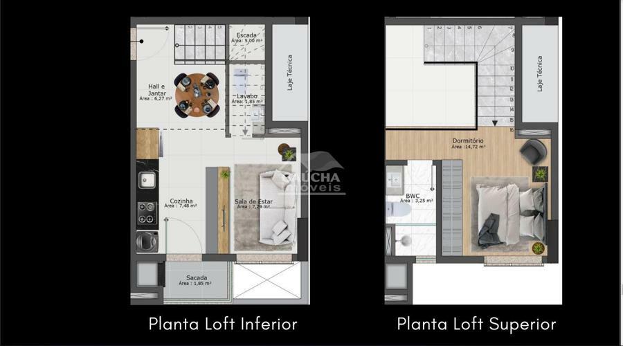 -Lofts Com mezanino com Área Útil de 52,00m²